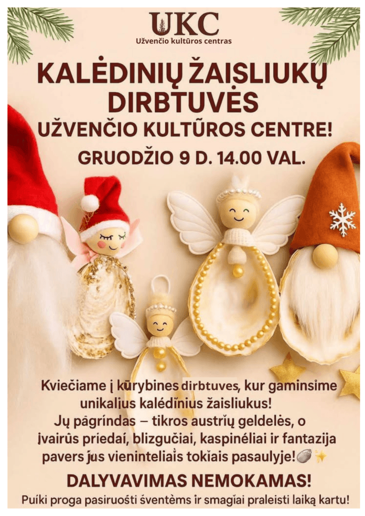 Kviečiame į kūrybines dirbtuves Užvenčio kultūros centre, kur gaminsime unikalius kalėdinius žaisliukus.
